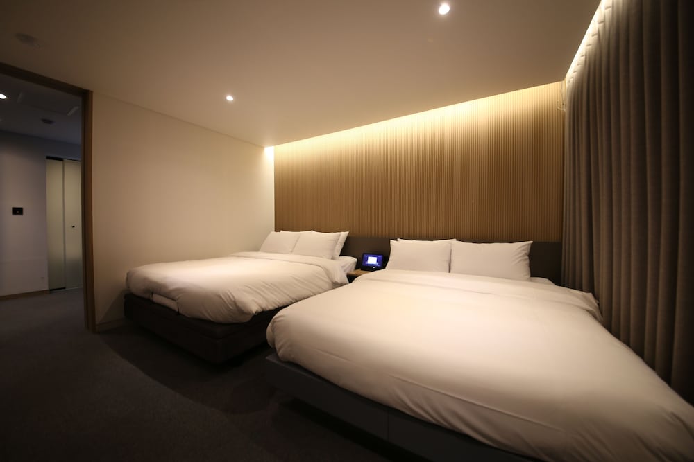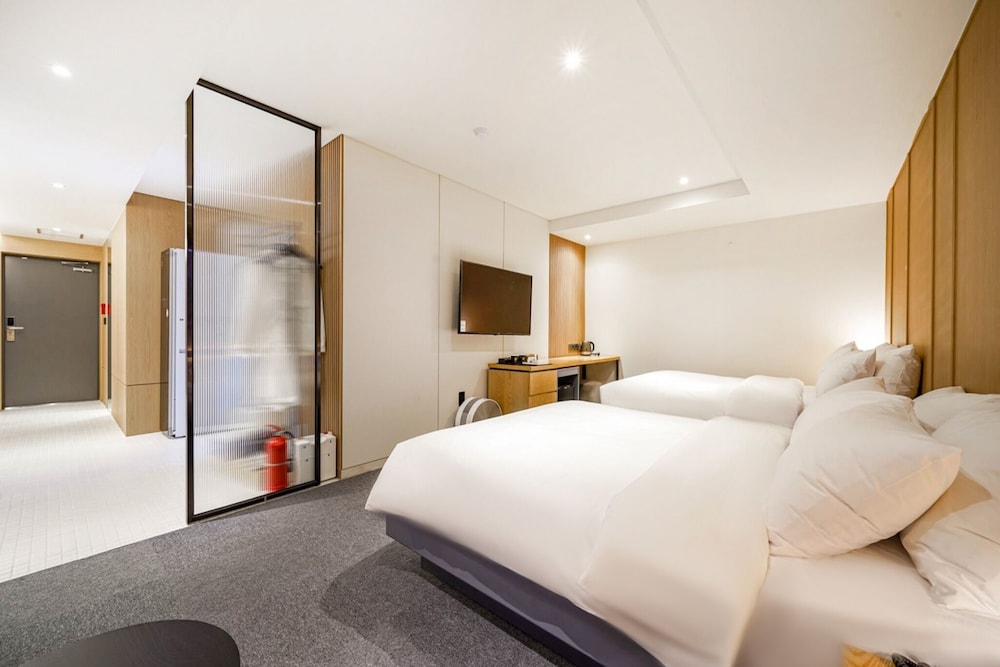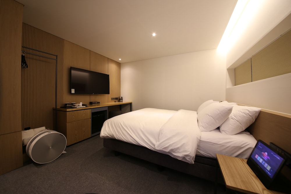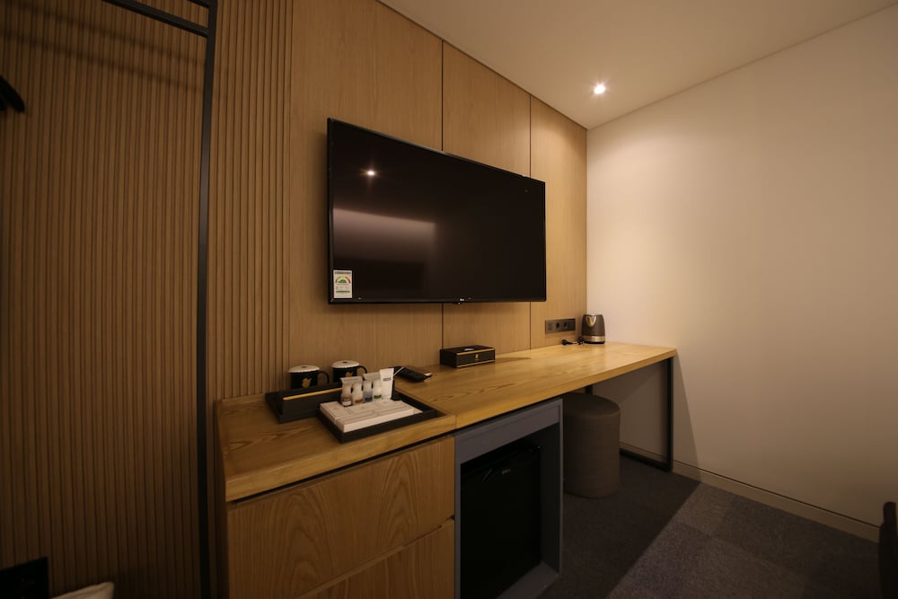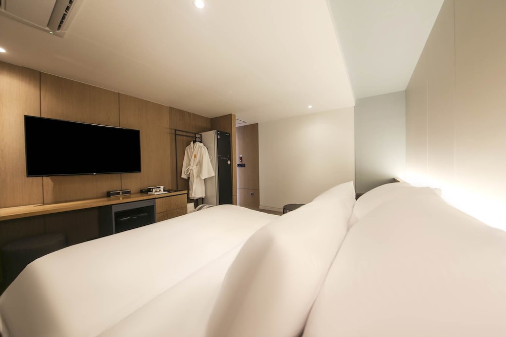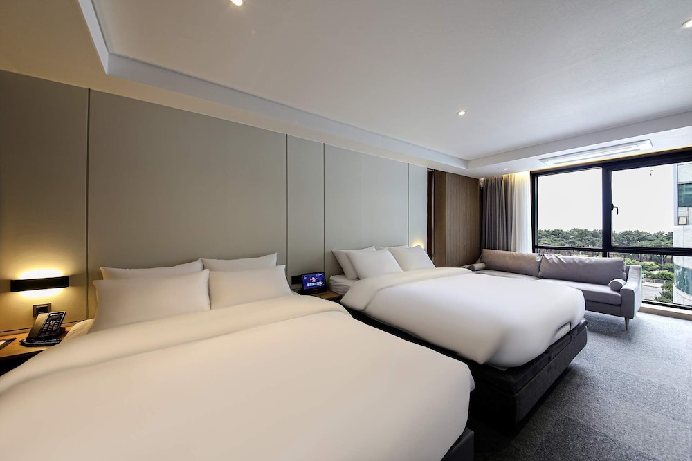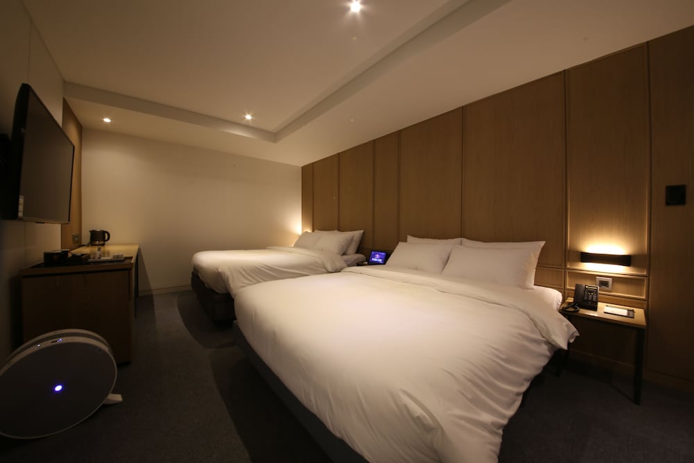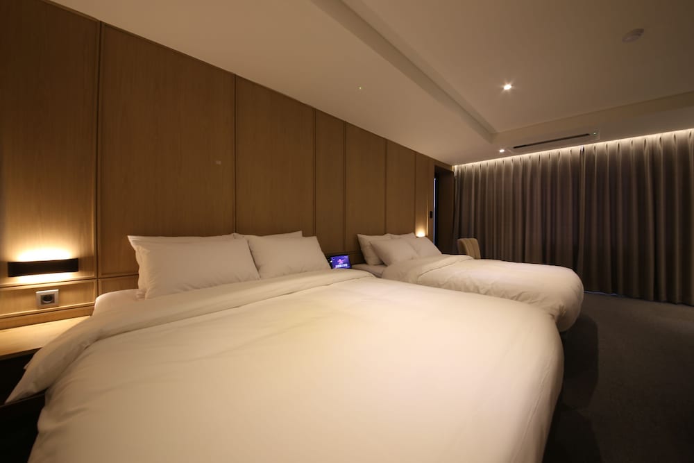 - 객실 Amenity: 무료 Wi-Fi, 45인치 TV, 냉장고, 안전금고, 커피포트, 드라이기, 생수 2병, 커피, 티, 휴대폰충전기, 가운2개, 슬리퍼, 에어컨
