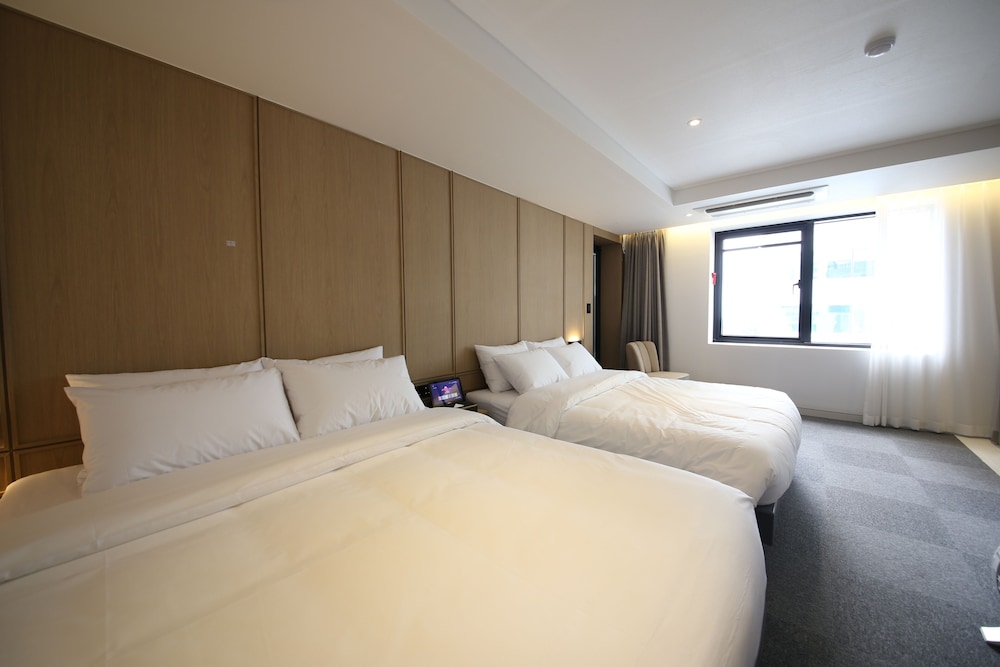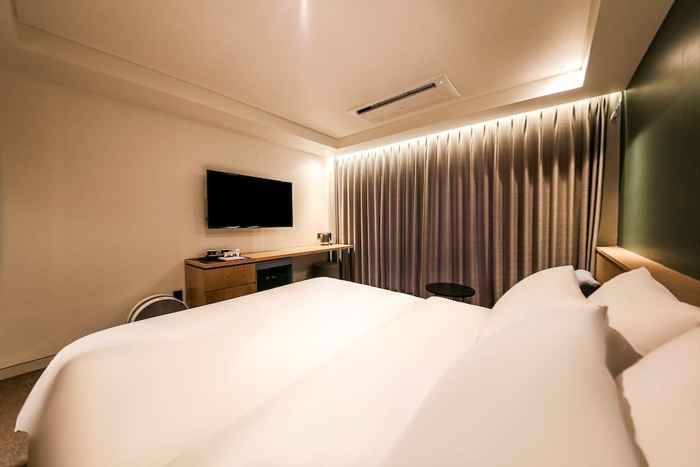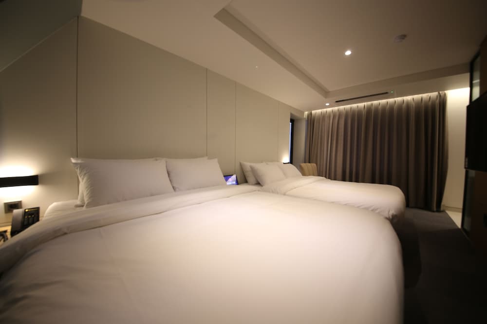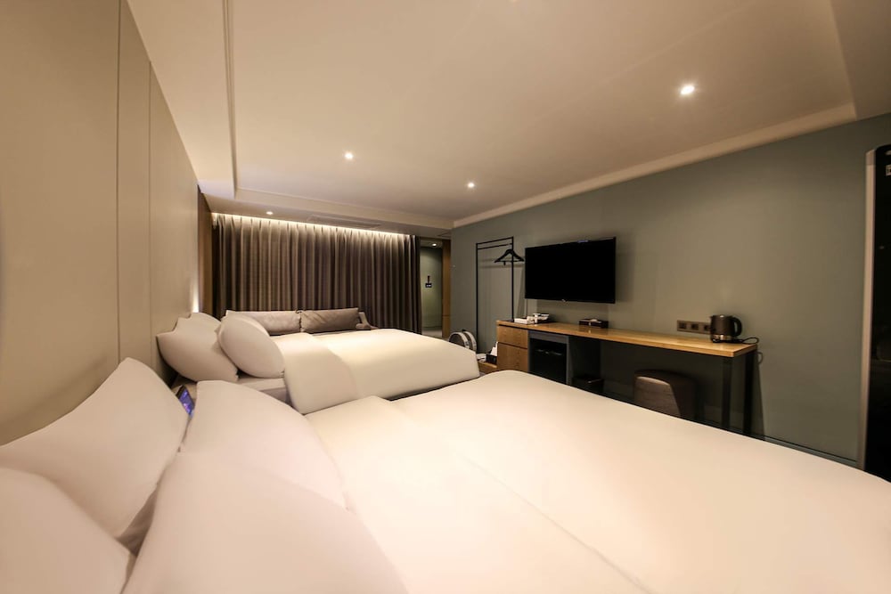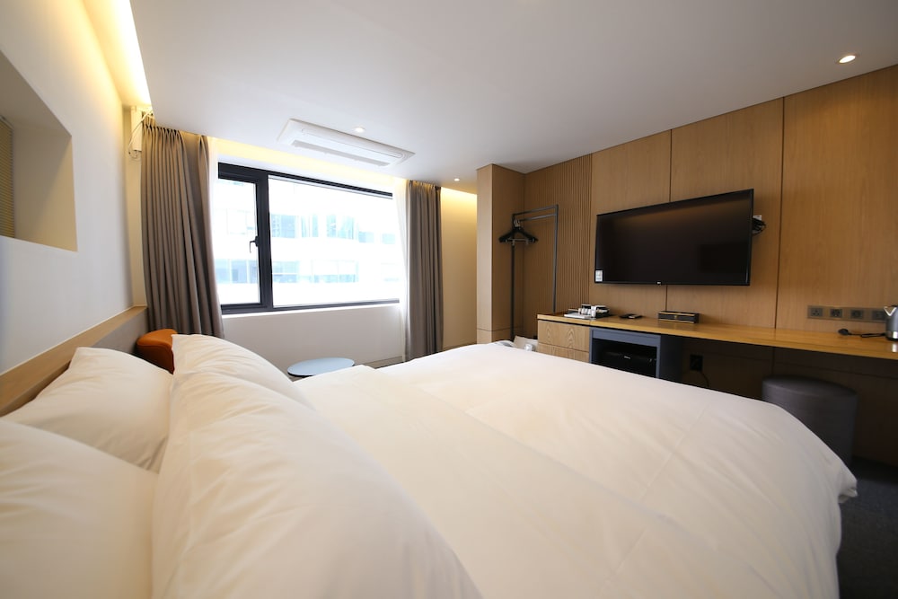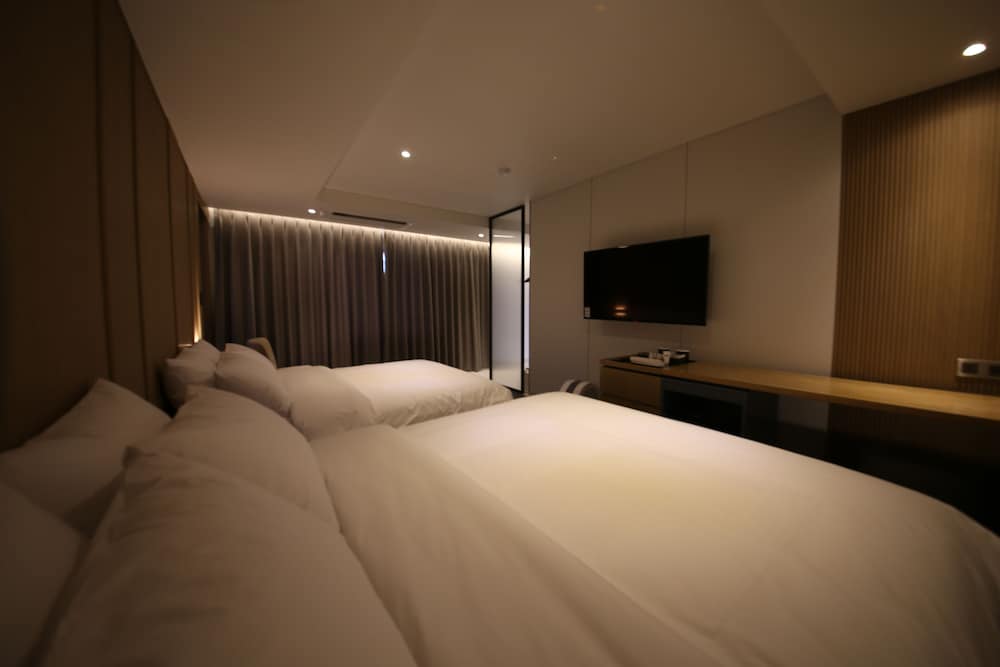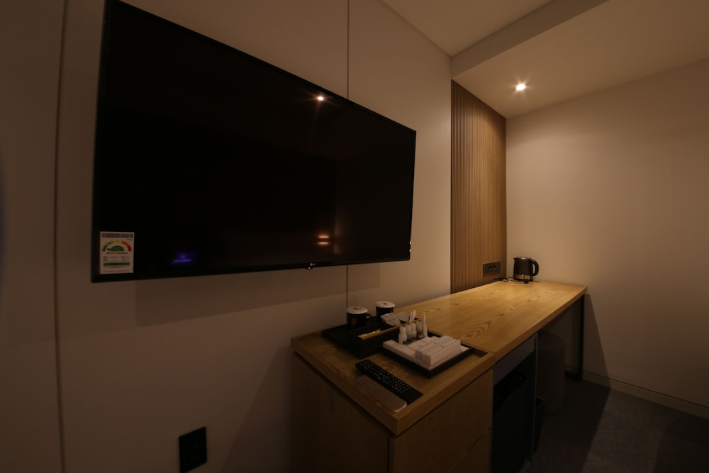 - 객실 Amenity: 무료 Wi-Fi, 45인치 TV, 냉장고, 안전금고, 커피포트, 드라이기, 생수 2병, 커피, 티, 휴대폰충전기, 가운2개, 슬리퍼, 에어컨
