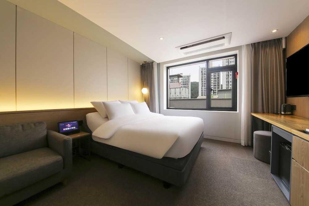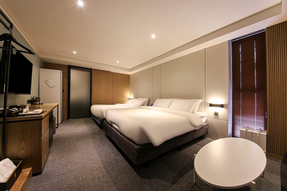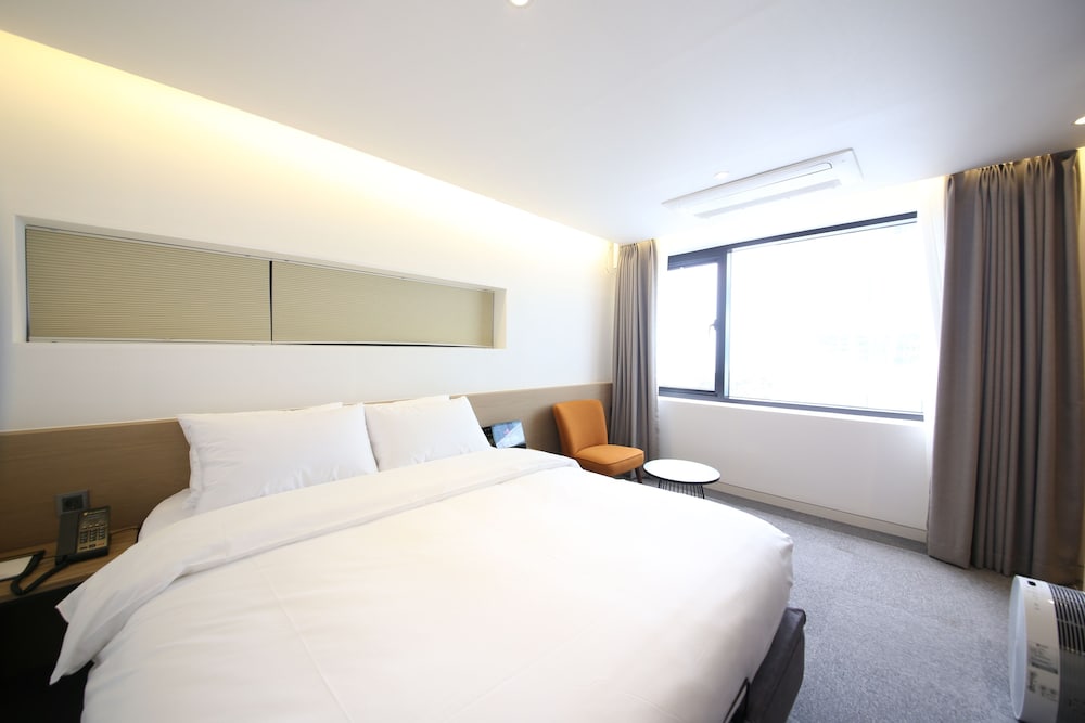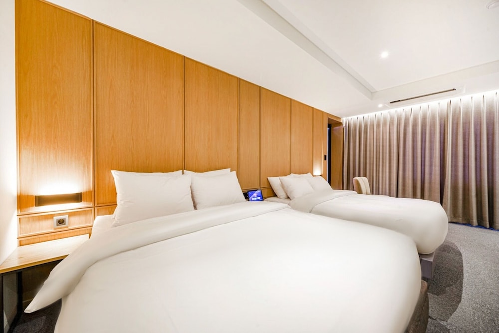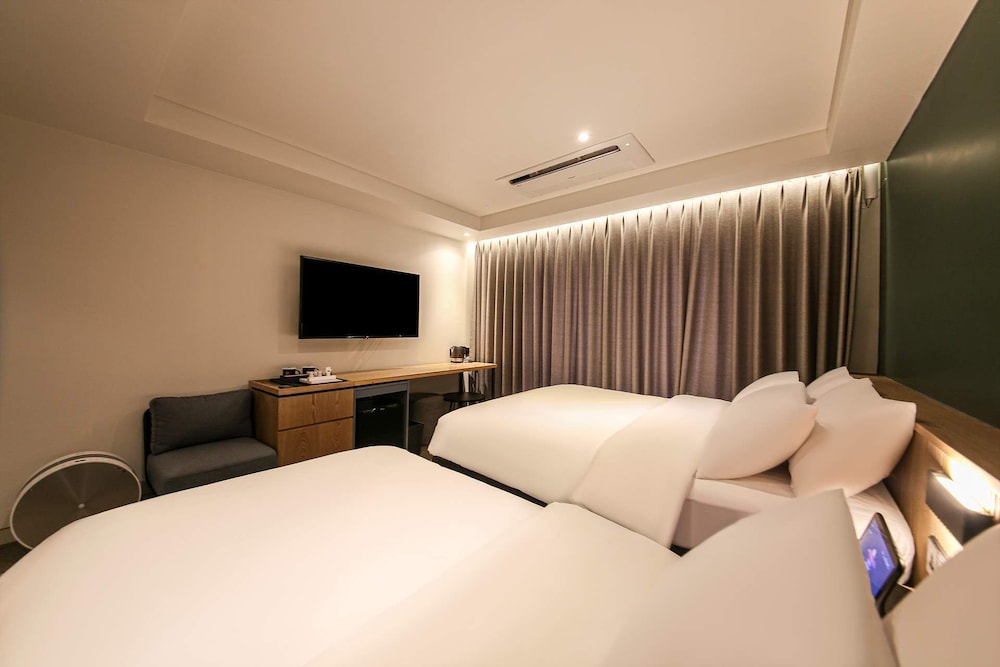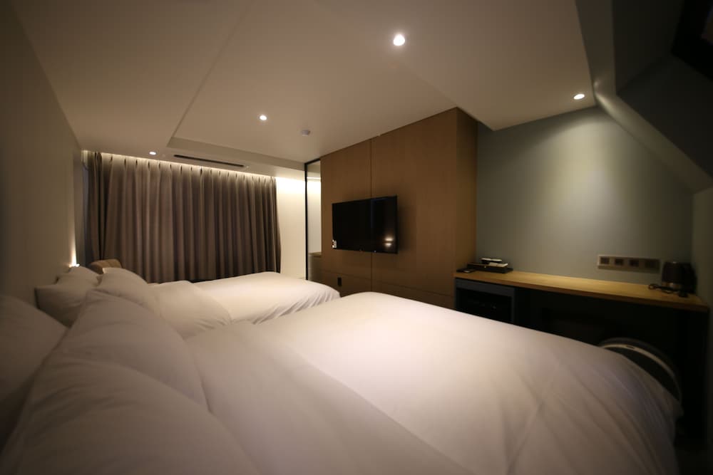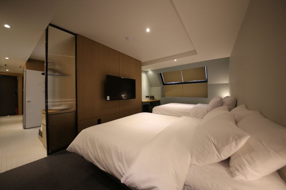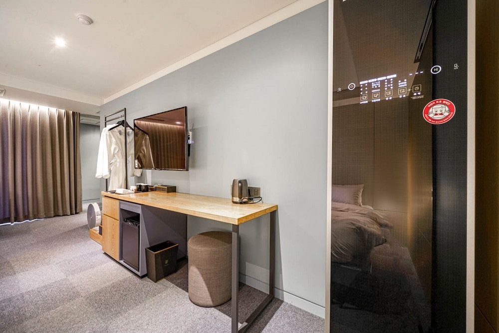 - 객실 Amenity: 무료 Wi-Fi, 45인치 TV, 냉장고, 안전금고, 커피포트, 드라이기, 생수 2병, 커피, 티, 휴대폰충전기, 가운2개, 슬리퍼, 에어컨