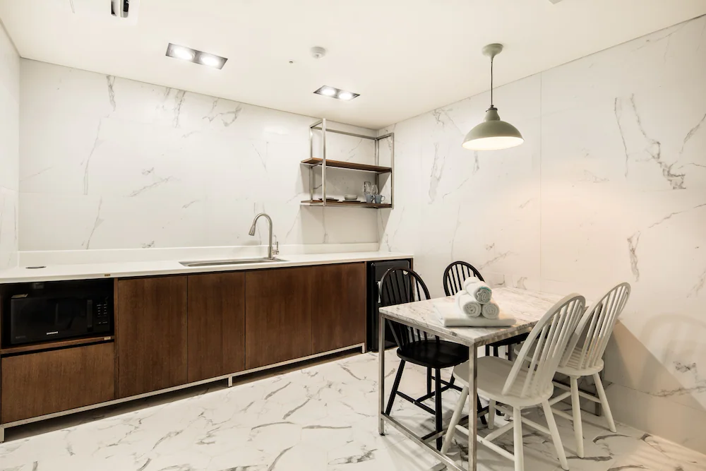 - 고객의 안전을 위해 모든 거래 시 현금 없이 결제 가능, 모바일 기기를 이용하여 객실 출입 가능 등의 조치를 시행 중입니다.