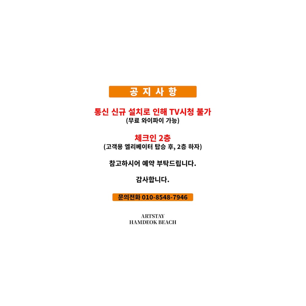 - 23:30 이후에 도착 예정이신 경우 예약 확인 메일에 나와 있는 연락처로 미리 숙박 시설에 연락해 주시기 바랍니다. 도착하시면 프런트 데스크 직원이 안내해 드립니다.