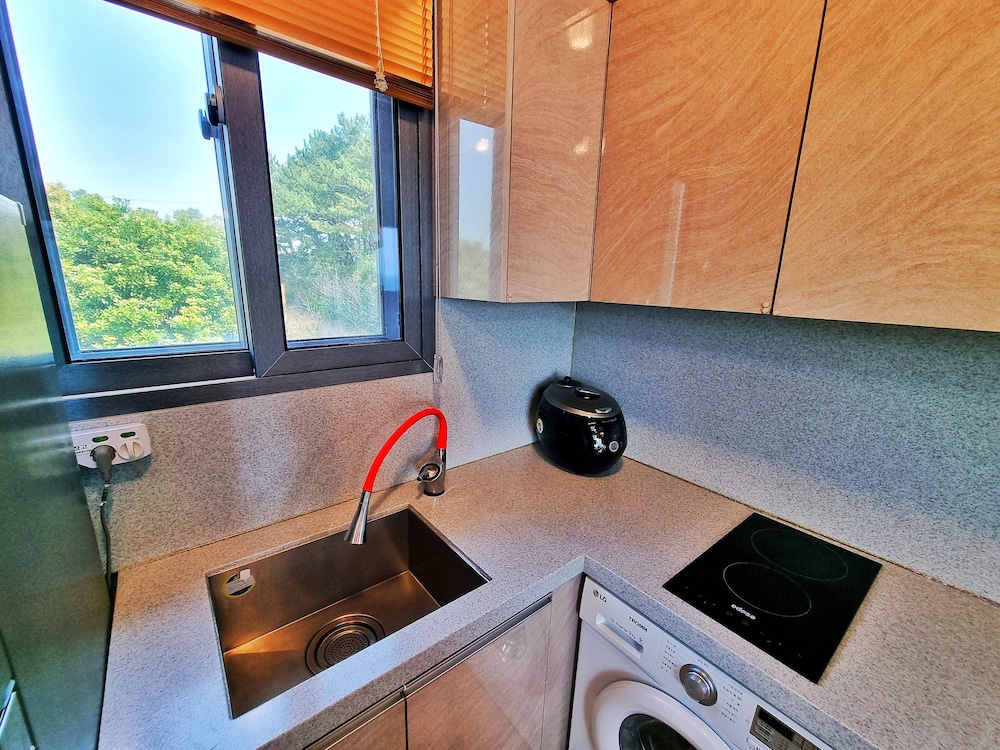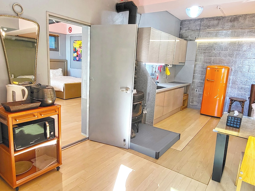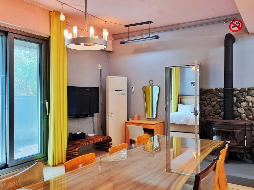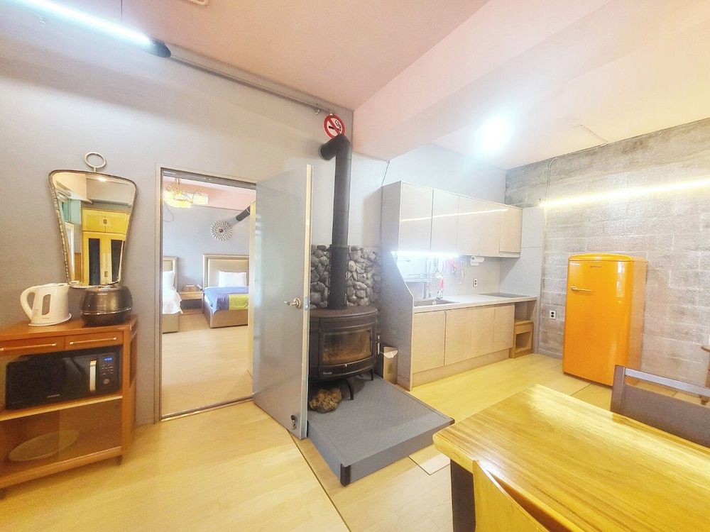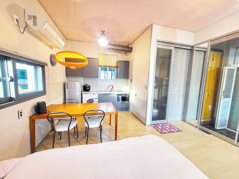 - 이 숙박 시설은 안전을 위해 소화기, 연기 감지기, 보안 시스템, 구급상자, 방범창 등을 갖추고 있습니다.