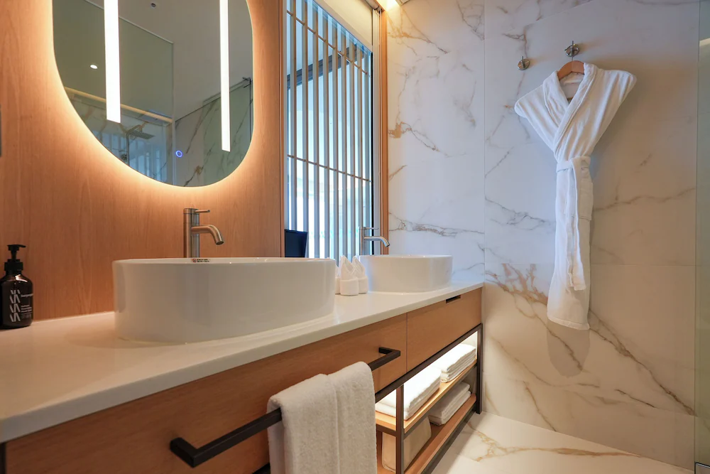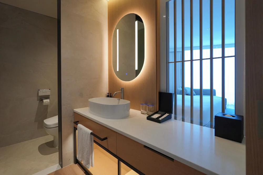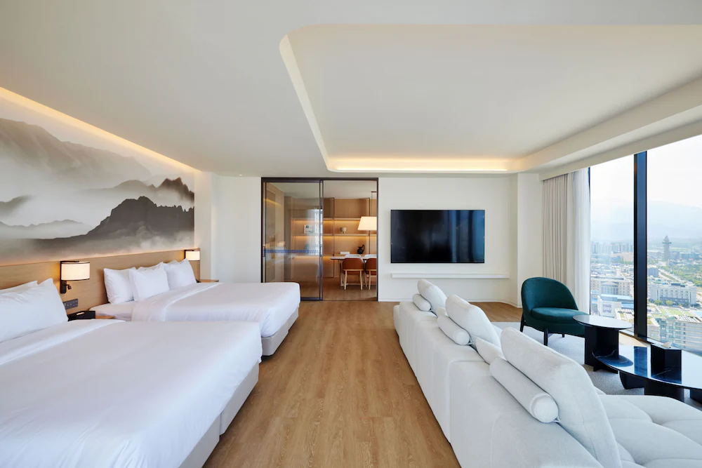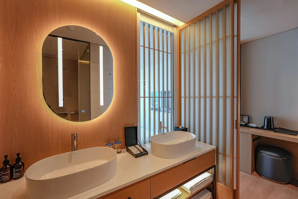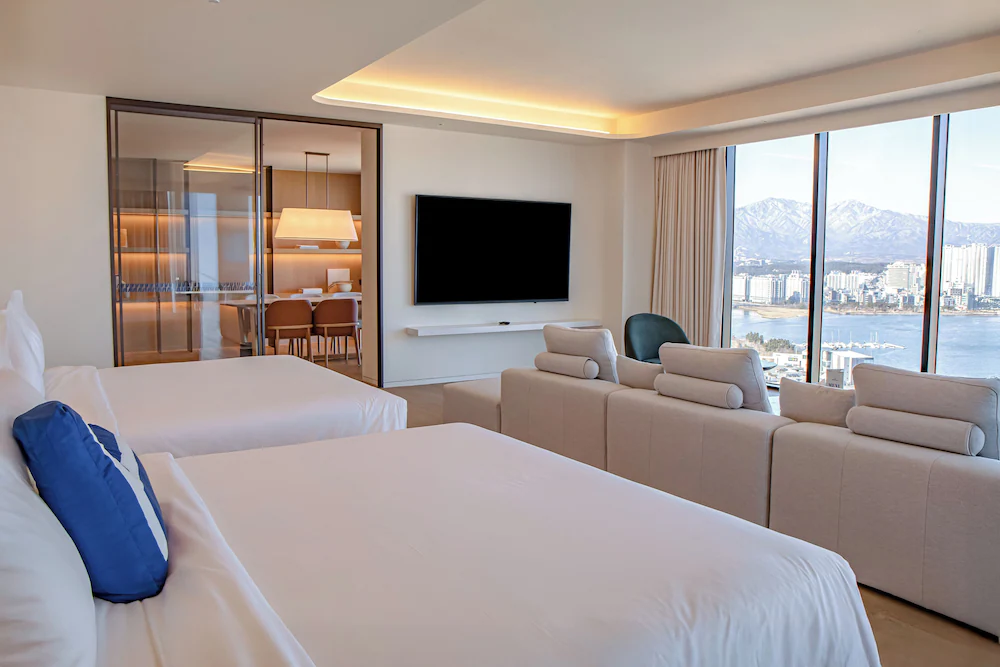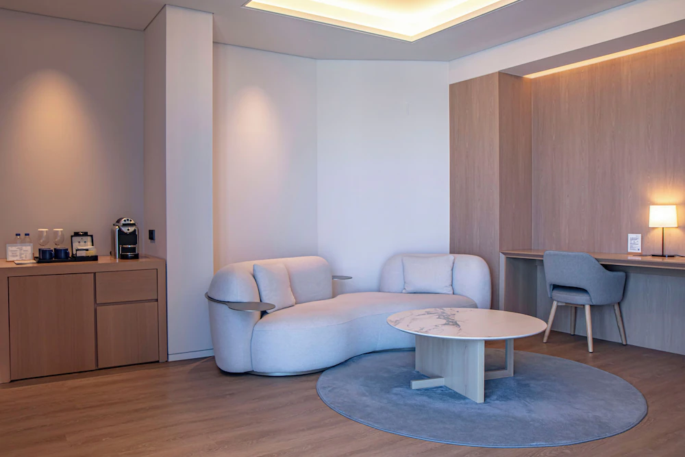- 생수, TWG 티백, 네스프레소 머신 (캡슐 커피 포함), 전화기, 드라이기, 쇼파, 에어컨, 욕실용품 (샴푸, 린스, 바디워시, 바디로션, 핸드소프), 커피포트, TV, 코튼가운, 슬리퍼, 다리미 (대여)