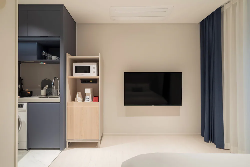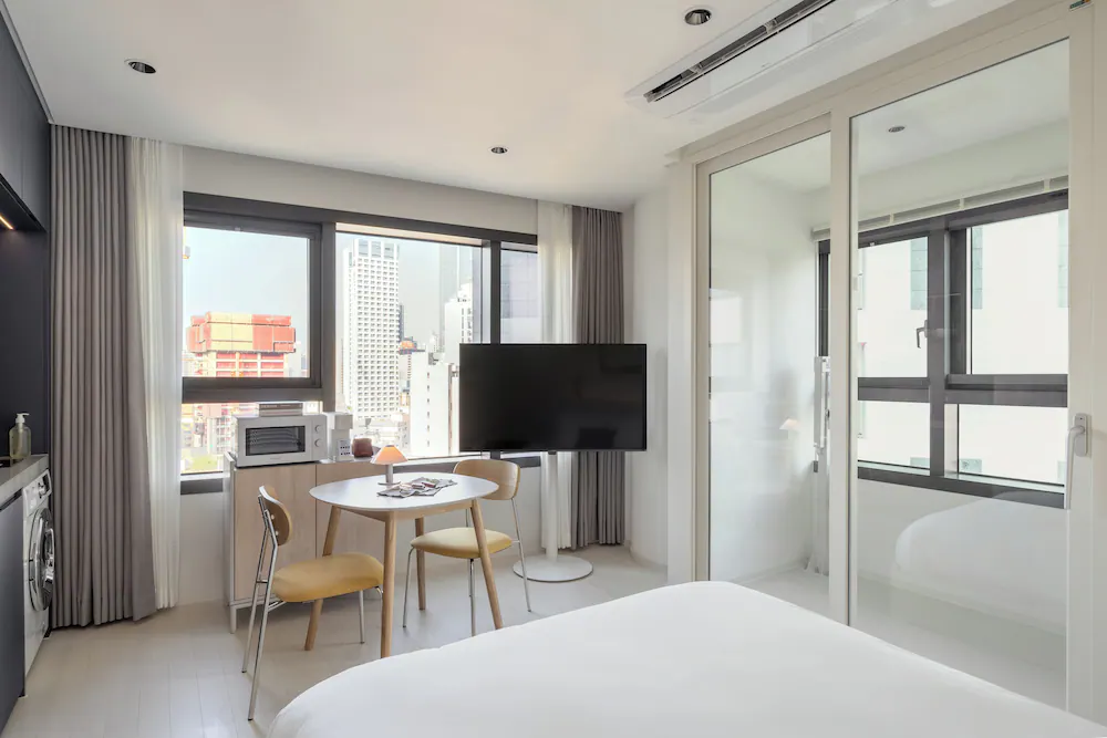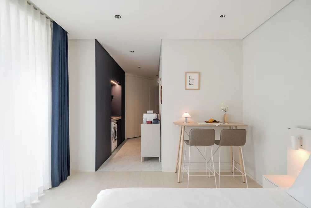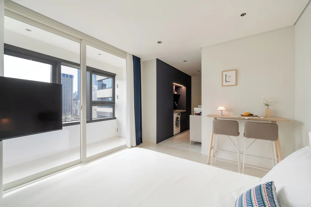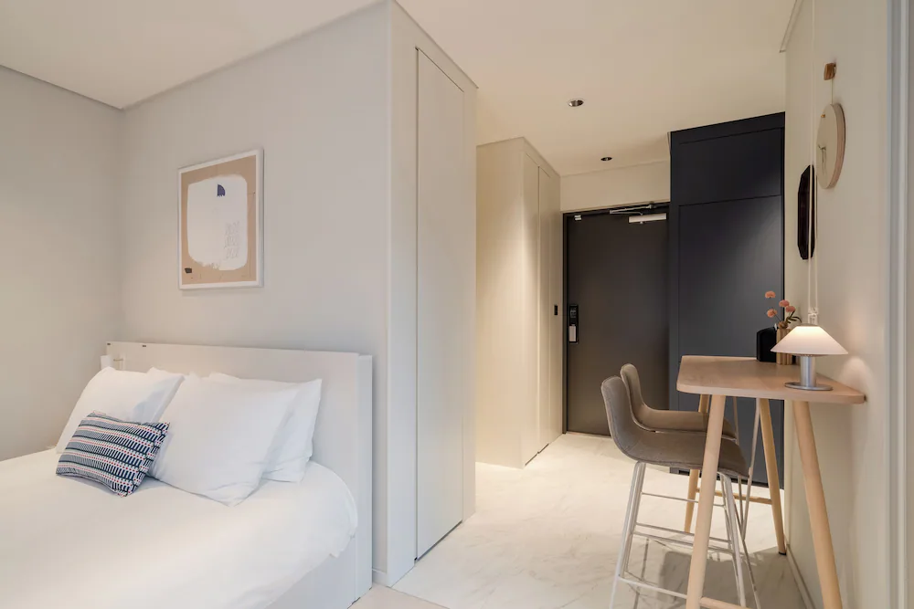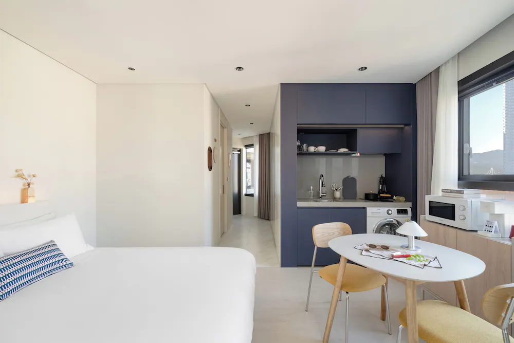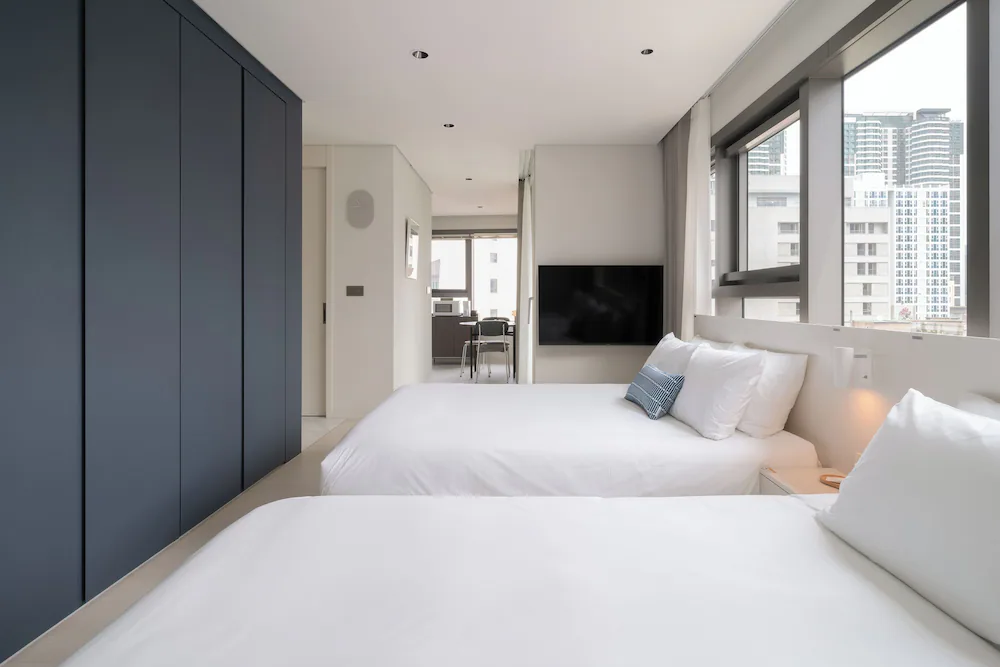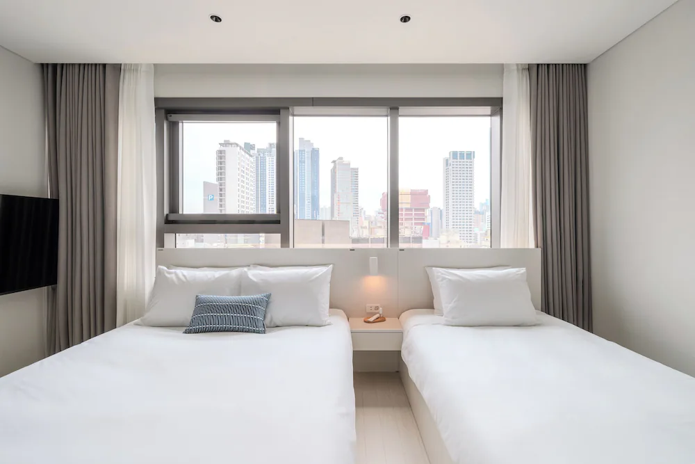 - 구성품: 침구, 생수, 커피 캡슐, 타월, 슬리퍼