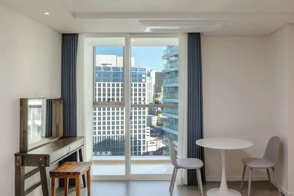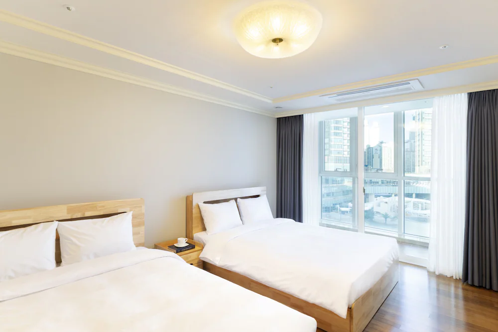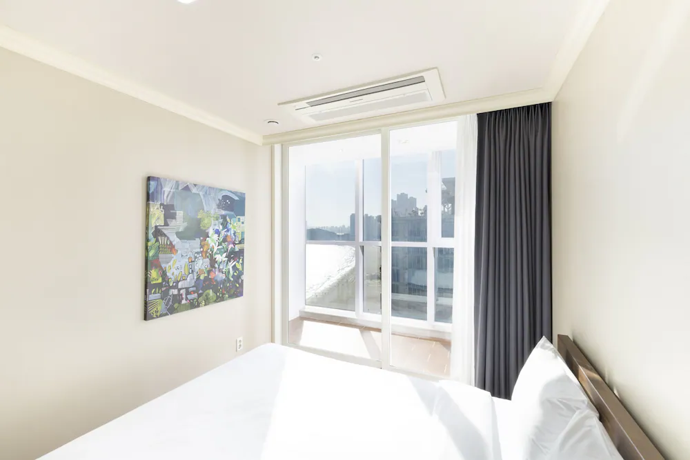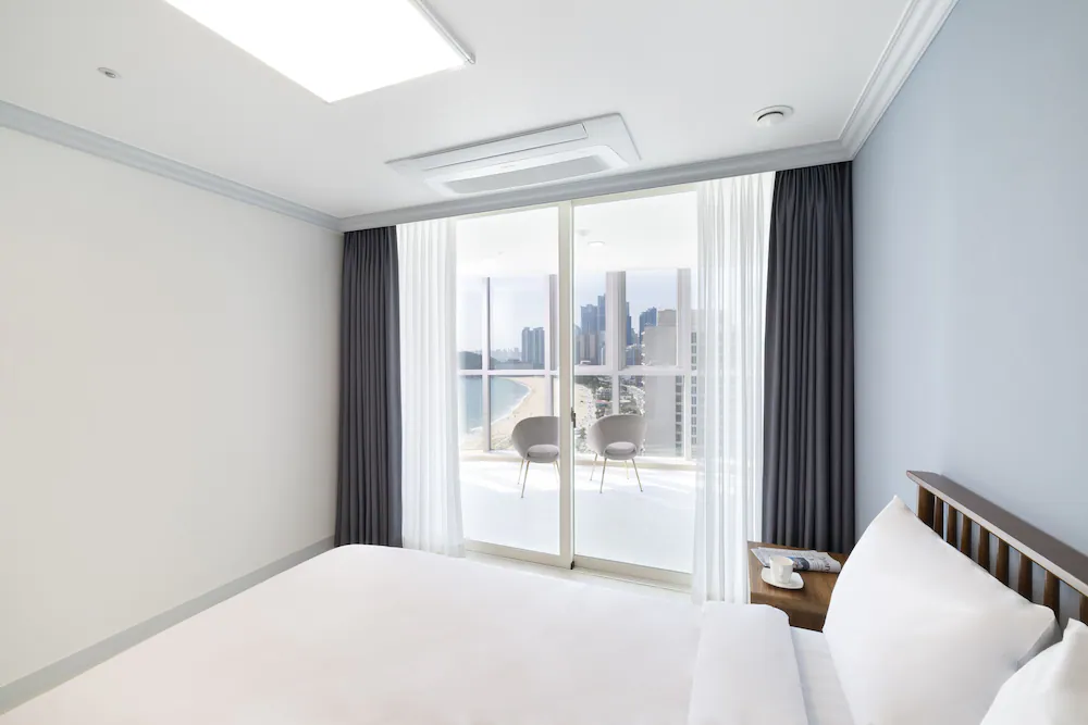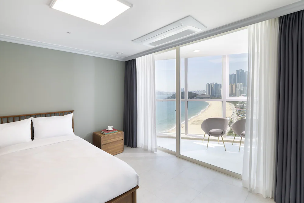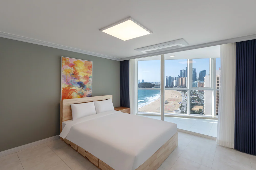 해운대 해변 도보 1분! 최적 입지! 넓은 거실과 분리된 침실을 갖춘 대형 평수 레지던스로, 여러 객실 예약이 번거로운 대가족 및 단체 여행에 최적화되어 있습니다.