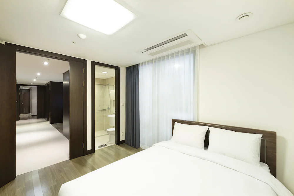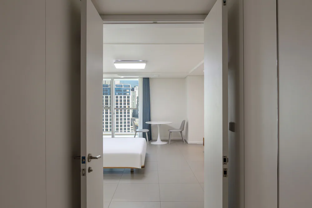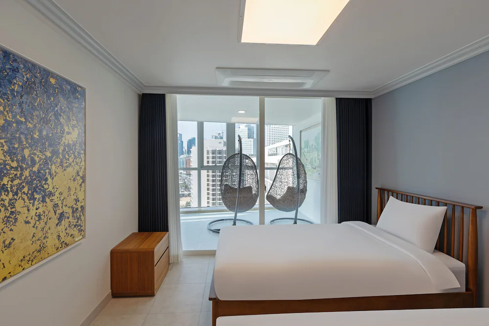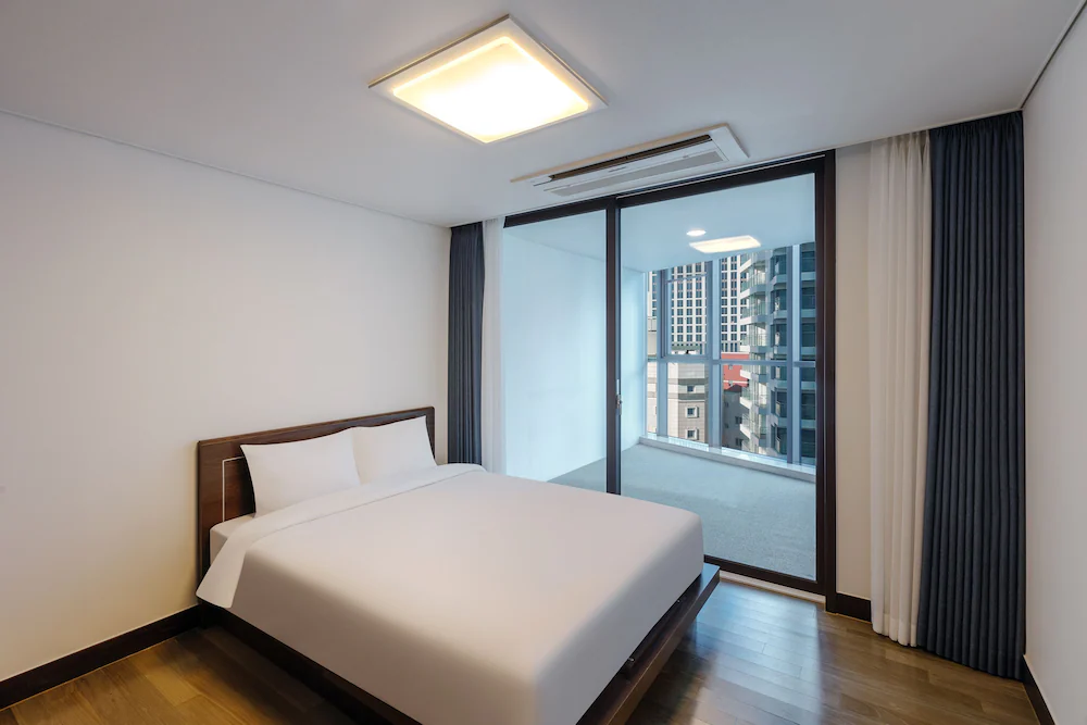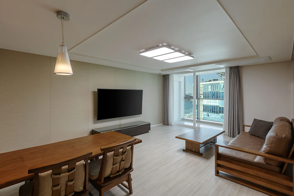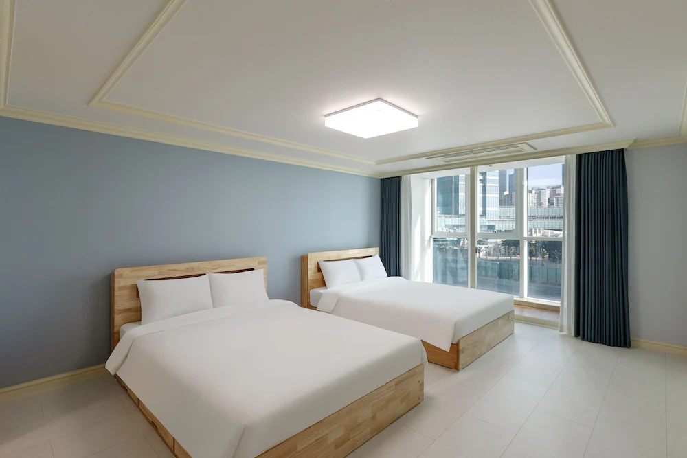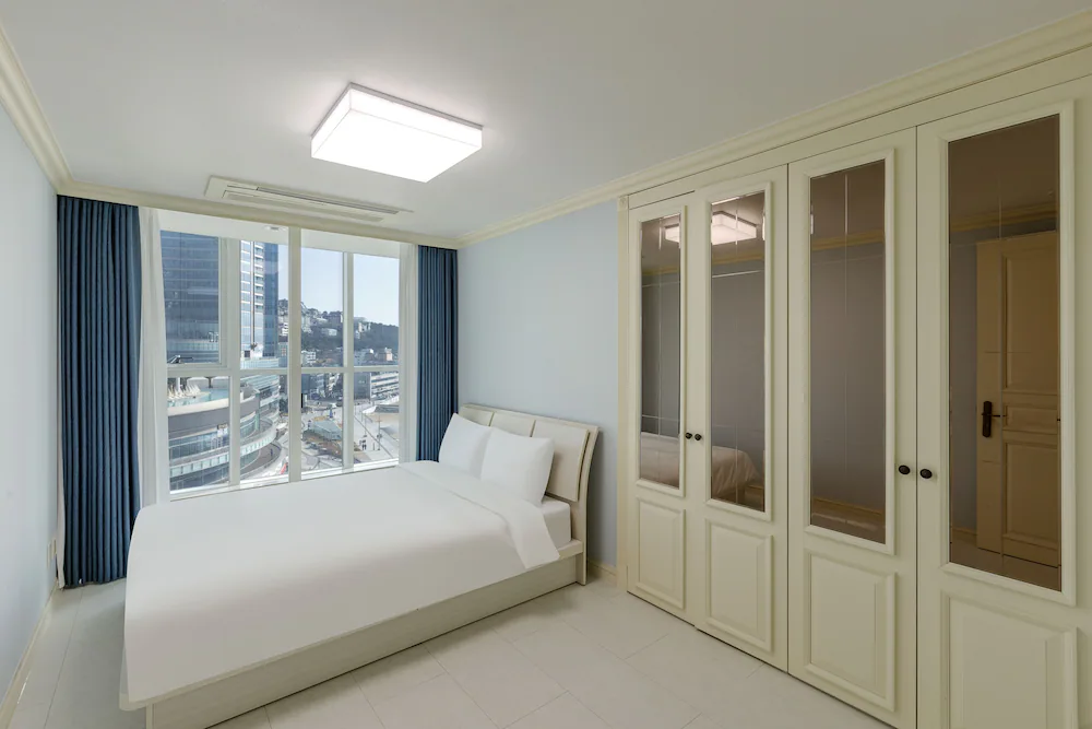 해운대 해변 도보 1분! 최적 입지! 넓은 거실과 분리된 침실을 갖춘 대형 평수 레지던스로, 여러 객실 예약이 번거로운 대가족 및 단체 여행에 최적화되어 있습니다.