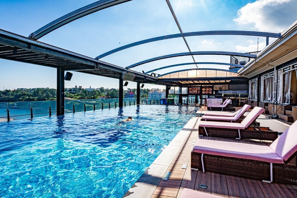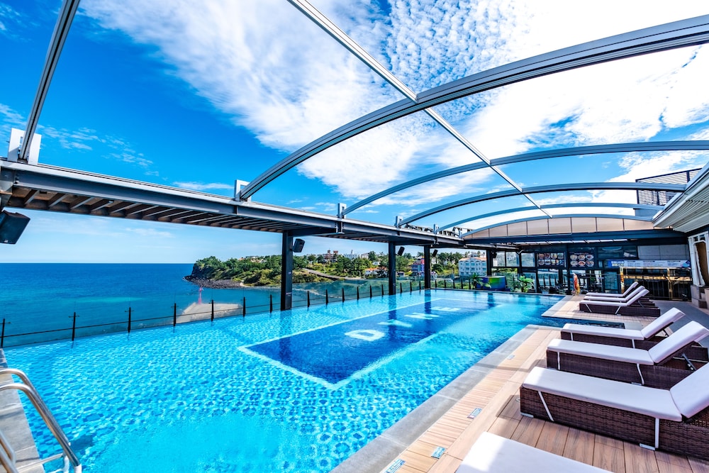 다인 오세아노 호텔의 루프탑 인피니티풀은 4계절 미온수풀로 운영하고 있으며, 루프탑 미온수풀에서 애월 바다의 수평선과 맞닿는 경험을 담아가실 수 있습니다.