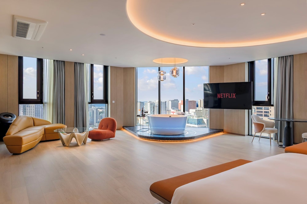 - 이 숙박 시설에는 어린이에게 적합하지 않을 수 있는 발코니, 파티오, 테라스와 같은 야외 공간이 있습니다. 이 부분이 염려되시면 도착 전에 숙박 시설에 연락하여 적합한 객실을 이용할 수 있는지 확인하시기 바랍니다.